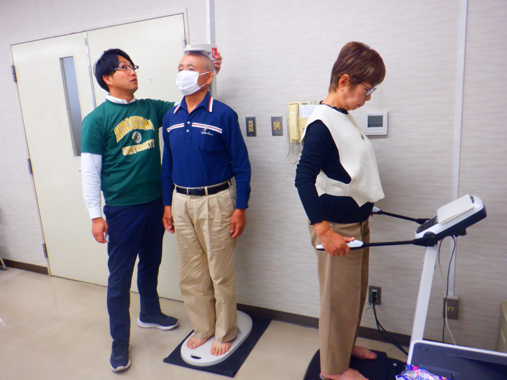1回目は、歩行姿勢や体力の測定によって自身の状況を把握し、