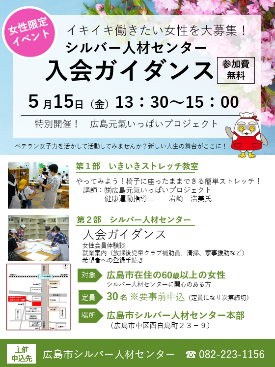 申し込みは、広島市シルバー人材センター事務局まで ☎082-223-1156